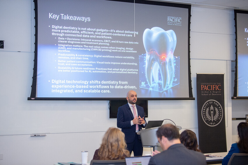 Leaders in artificial intelligence, clinical care, education and research gathered Jan. 16 at University of the Pacific, Arthur A. Dugoni School of Dentistry in San Francisco for the inaugural AI in Oral Health Care: From Innovation to Access symposium.